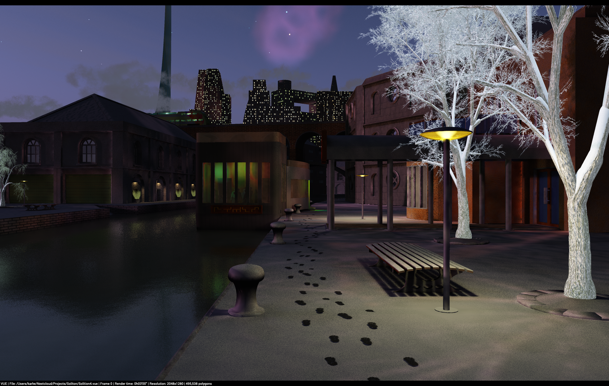 GSV Spa (WIP) A multi-level spa in a futuristic setting. The design is inspired by the architecture of the GSVs in the Culture series by Iain M. Banks. Blender 4.0 cycles