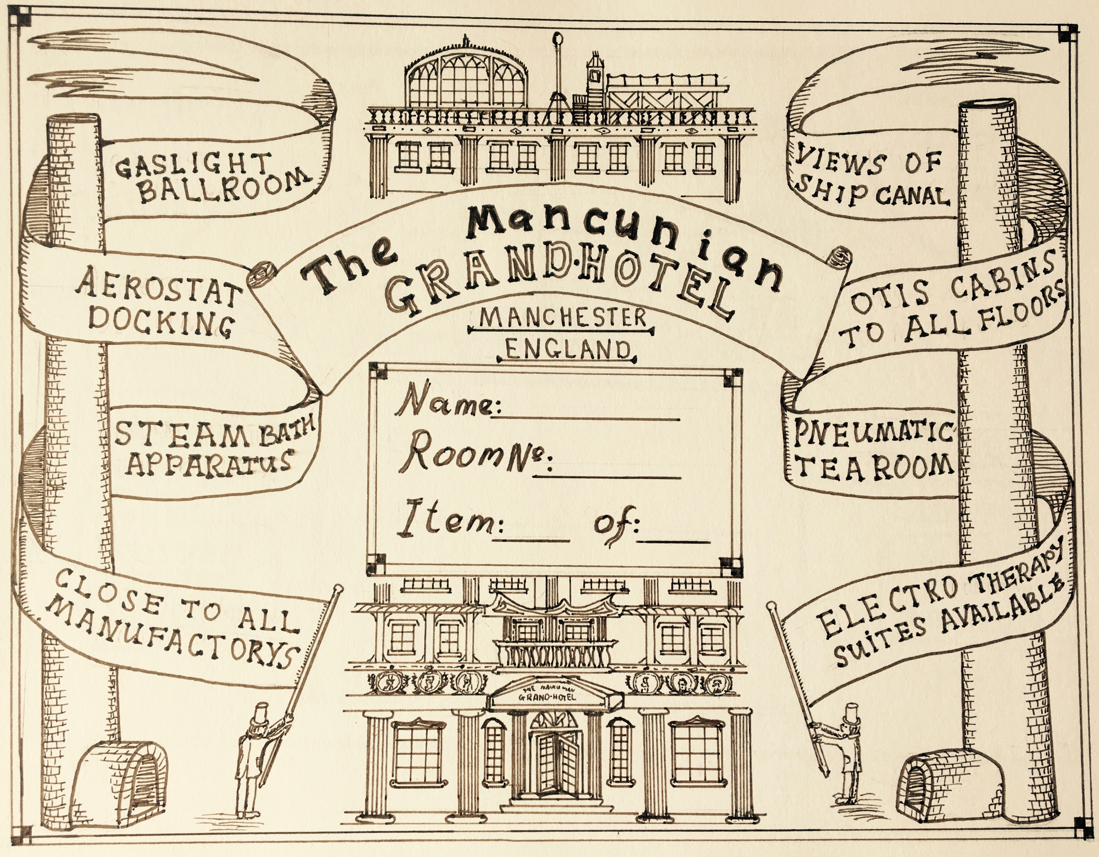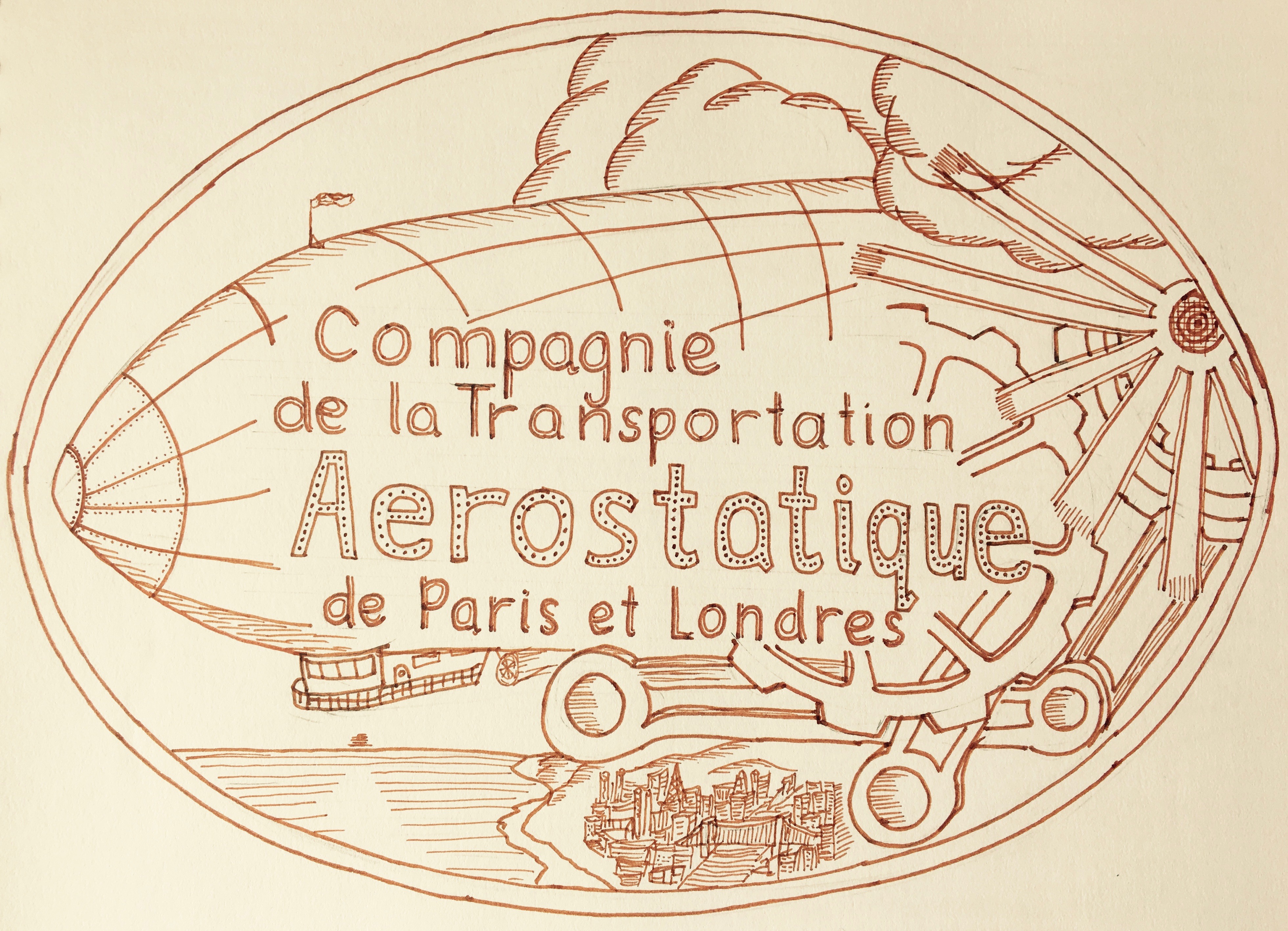 Aerostat Luggage Label Aerostat luggage label, sepia technical pen on beige paper