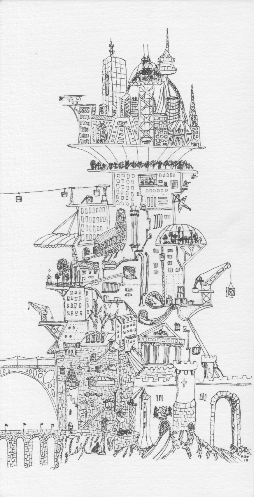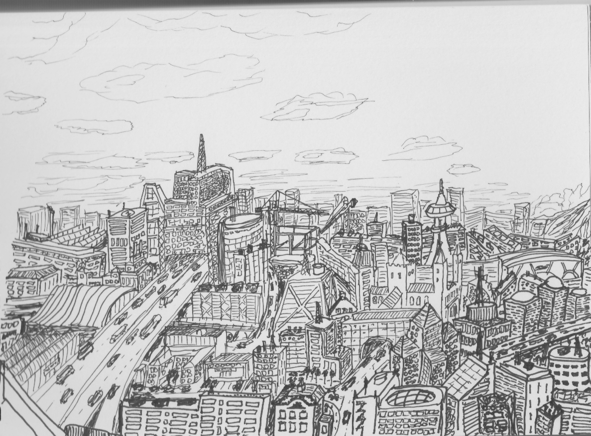 Lincoln Castle Tower Part of Lincoln Castle, black fine liner on art paper (compare with marker pen drawings for a different angle)