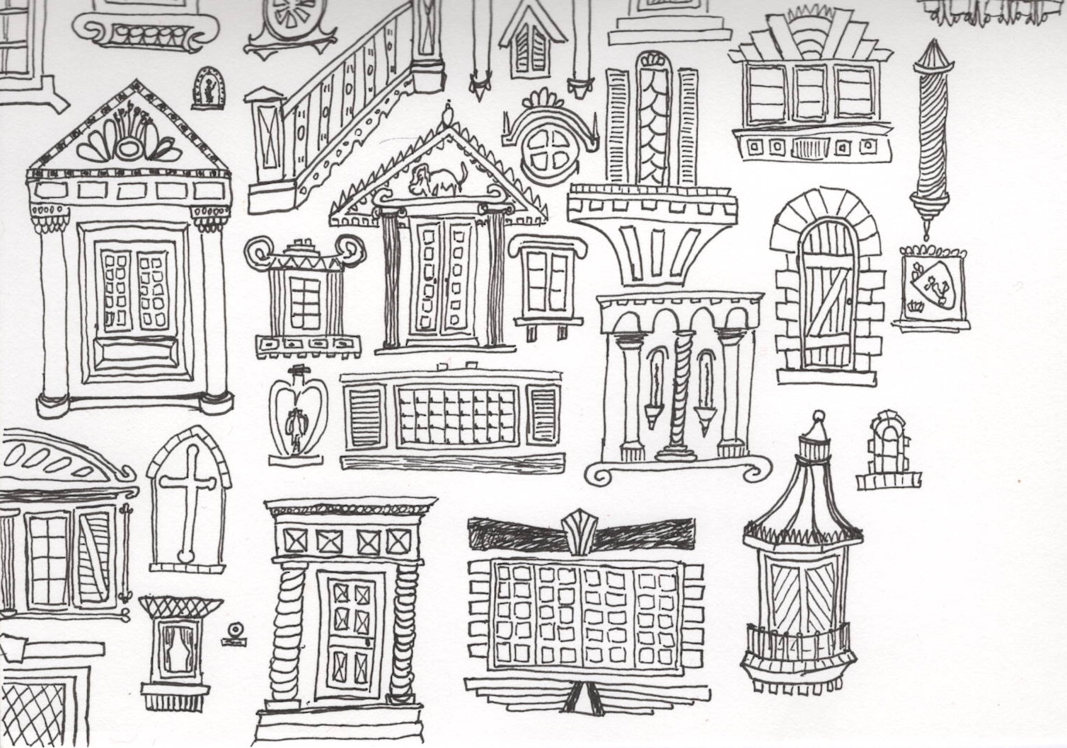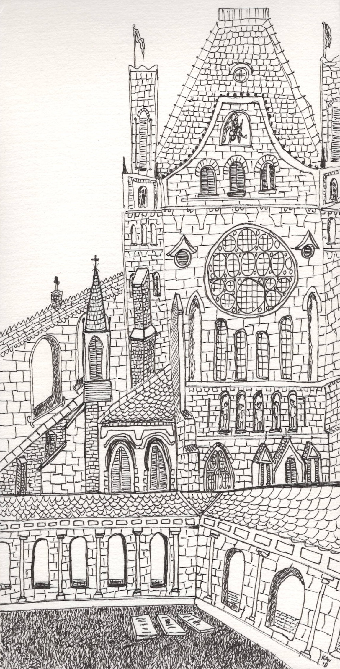Cathedral View View of Lincoln Cathedral from within the cloister court, black fine liner on art paper