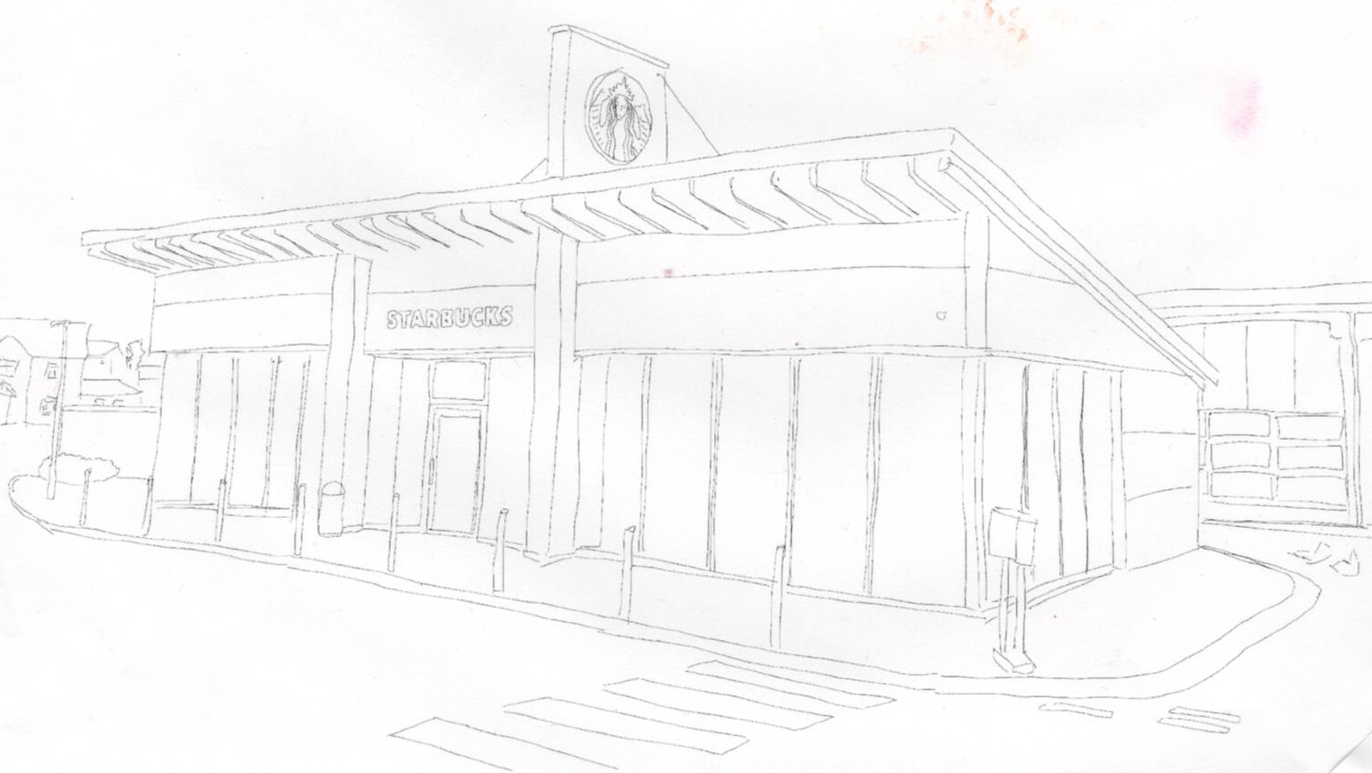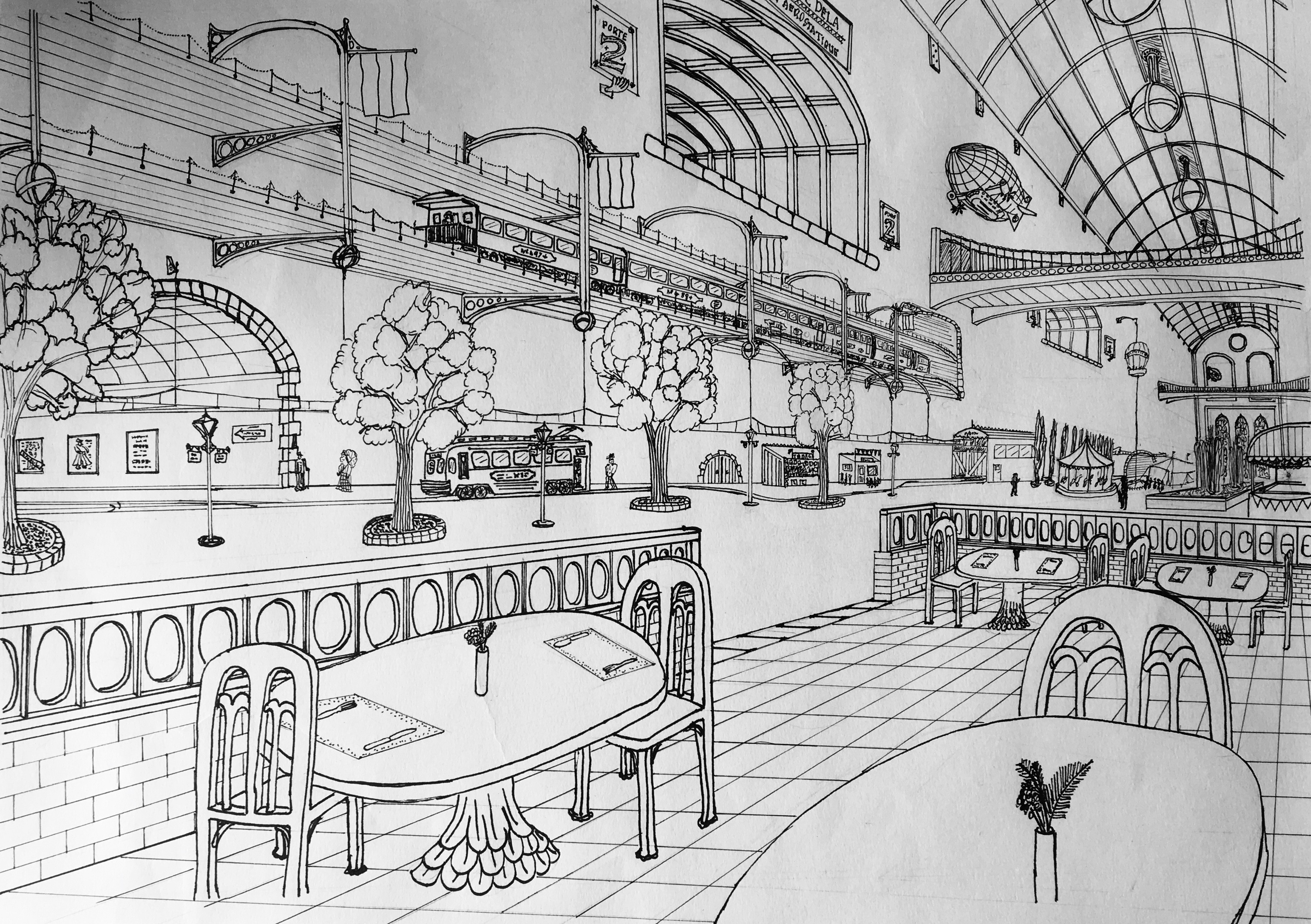 Disneyland Hotel The Disneyland Paris Hotel from the gardens, sepia ink pen on art paper